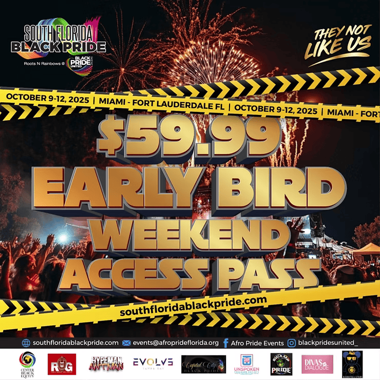 Black Prides United is currently offering Early-Bird specials on all tickets and weekend passes. The first 100 people to use the code: BPU10 will get 10% off their tickets. The website to purchase tickets is southfloridablackpride.com. You don’t want to miss out on this!